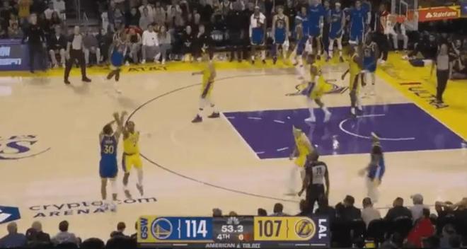 與此同時(shí),里夫斯末節(jié)開始發(fā)力,湖人在還剩2分鐘左右追到105比112落后7分。